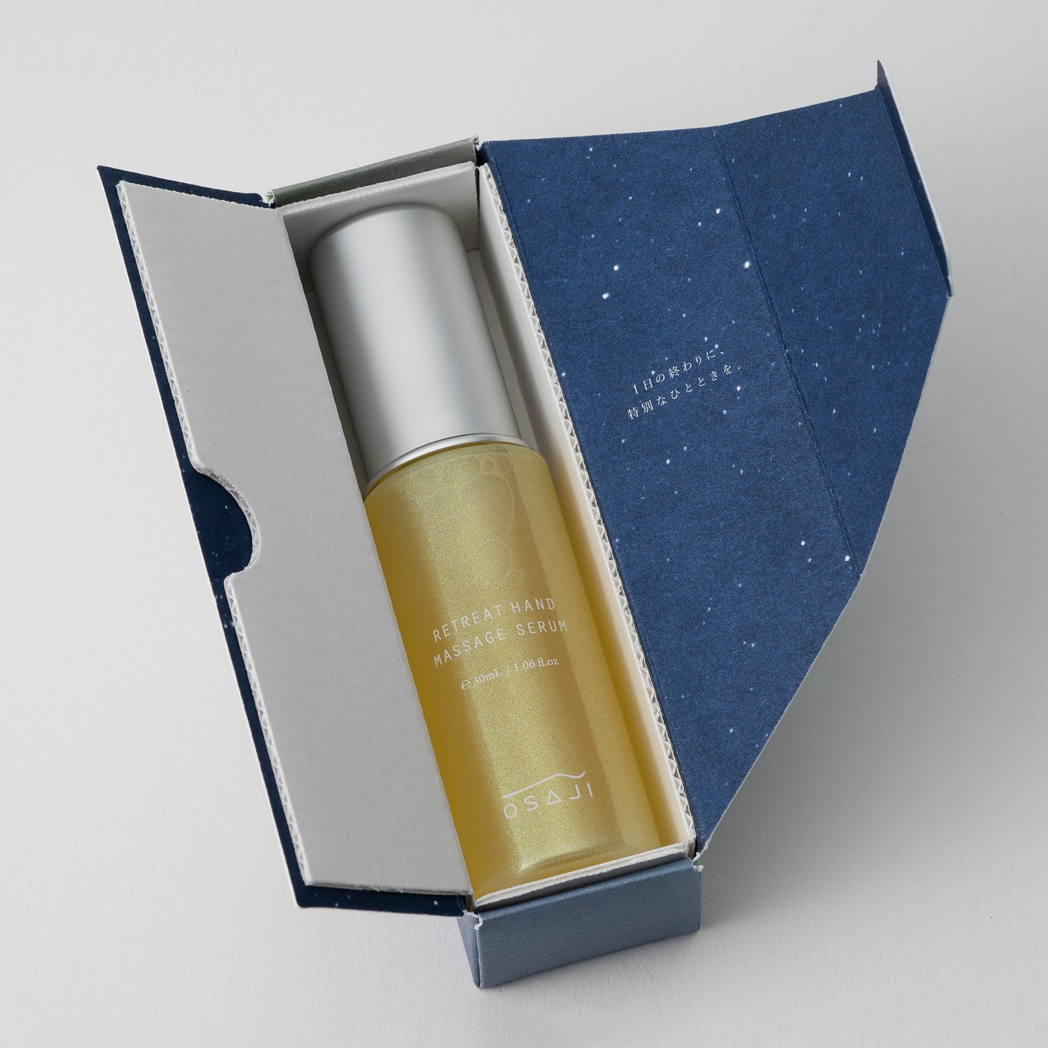 おやすみ前に適量を手に取り、やさしく指先までマッサージしながら伸ばし、なじませます。リトリートハンドモイストクリームを重ねて使うと、うるおいを閉じ込める効果が増し、より一層しなやかな手元に仕上がります。