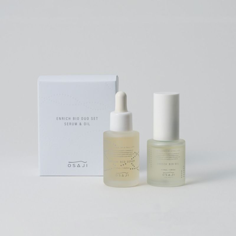 OSAJIのスキンケアアイテムで一番人気*の美容液『エンリッチバイオセラム』と、肌に必要な油分と水分のバランスに着目した『エンリッチバイオオイル』を組み合わせた特別なセット。単品で揃えるよりも少し気軽に試せる価格で登場します。夏から秋へと変わる季節の、大人肌を支えるために。 *2024年1〜12月 フェイシャル部門累計売上金額 自社調べ